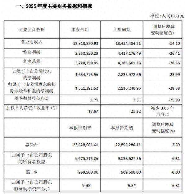 3月10日盘后配资指数网官网,陕西煤业(601225)发布2025年度业绩快报。快报显示,公司2025年营业总收入为1581.89亿元,同比下降14.10%;利润总额322.83亿元,同比减少26.36%;归属于上市公司股东的净利润165.48亿元,同比减少25.99%。