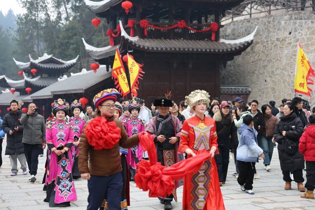 襄阳古隆中景区升级打造“遇见诸葛亮・借东风过大年”实景剧情游,游客化身“三国游士”,沉浸式感受三国文化魅力。十堰武当山创新推出“数字祈福+实景祈福+演艺大秀”融合模式,以“新春祈福”为目的游客占比达93%。鄂州依托“吴王故都”深厚三国文化底蕴,带领市民游客开启一场贯通古今的文化穿越之旅。恩施浪漫宣恩、女儿城、土司城等景区同步推出沉浸式夜游、机器人展厅等互动体验产品,吸引年轻群体打卡;仙桃沔阳小镇的第六届非遗民俗文化节点燃游客热情,沉浸式情景剧《烽火沔阳》成为最大亮点。