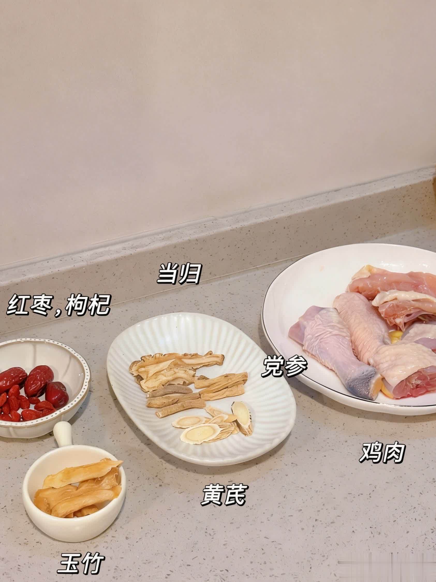 黄芪是补气的,当归是养血的,姨妈走了血亏,它刚好能补上。党参健脾益气的,玉竹是滋润的,乌鸡本身比普通鸡肉更滋补,肉嫩汤鲜。